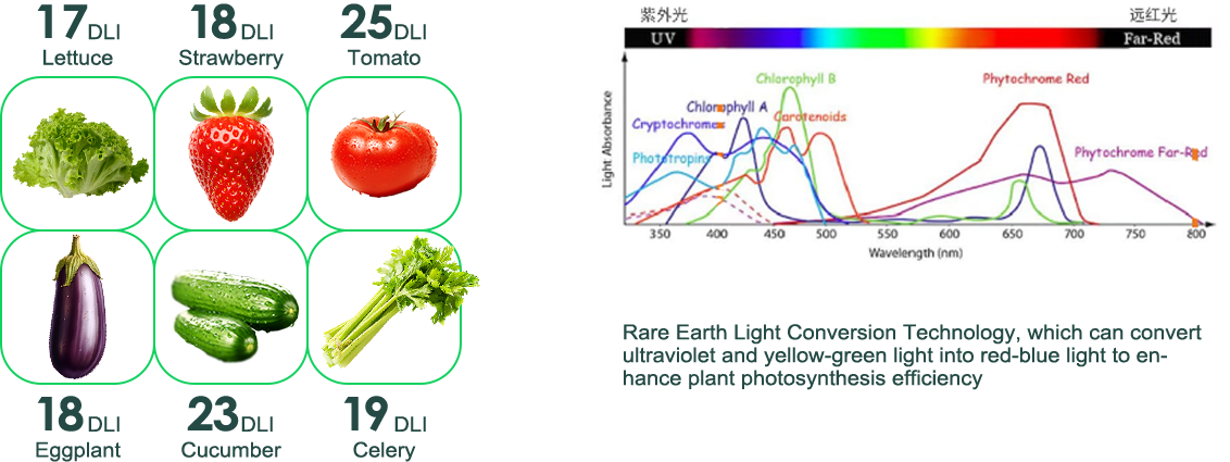 Rare Earth Light Conversion Technology Customized to meet the required light integral and spectrum for different plants